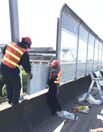 工人們風(fēng)雨無(wú)阻,就連中午也頂著烈日?qǐng)?jiān)持在一線(xiàn)安裝。據(jù)悉,這次隔音屏的安裝主要是唐家橋?qū)幉ê蜏刂莘较驑蜻叾渭s320米,下洋塢橋?qū)幉ǚ较驑蜻叺缆范渭s50米、橋梁段約90米。
