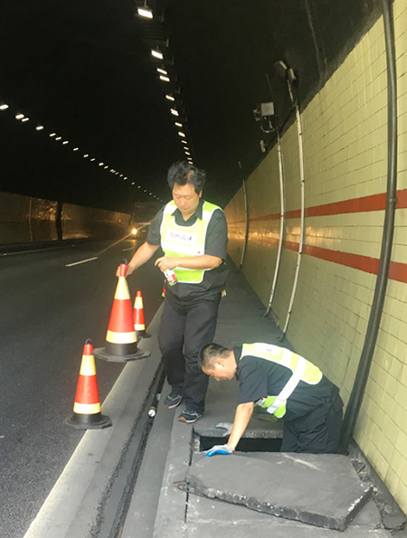 8月3日,公司機電設備維養(yǎng)中心主任助理葉俊帶領三名隊員,頂著高溫,對塘嶺溫向隧道北洞口路燈電纜進行了重新鋪設,讓隧道口罷工多日的9盞路燈重放光明,有效保障了夜間行車安全。