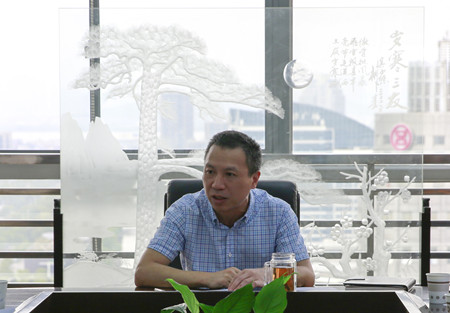 圖為公司副董事長、總經(jīng)理張建平對(duì)道路養(yǎng)護(hù)提出具體要求
