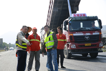 在公司路段寧向K1643+800處左右,路面銑刨作業(yè)正在緊張地進(jìn)行著,張建平看到施工人員在銑刨車上駕駛著,監(jiān)理單位工作人員在現(xiàn)場低頭觀察著,工程養(yǎng)護(hù)部監(jiān)管人員王劍也認(rèn)真地盯著銑刨車經(jīng)過的路面……“辛苦了!”張建平上前與大家打了聲招呼。然后向大家了解當(dāng)天的工程安排和進(jìn)度,以及正在進(jìn)行的施工作業(yè)情況,詢問了有哪些困難和問題,提出了一些施工中的注意事項,特別強調(diào),要注意安全,要視質(zhì)量為生命,務(wù)必保質(zhì)保量地完成養(yǎng)護(hù)攻堅工作。
