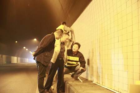 圖為集團(tuán)副董事長、總經(jīng)理張建平在黃土嶺隧道整治施工現(xiàn)場檢查