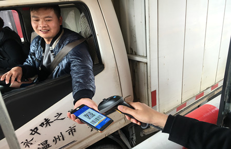 “嘀!”掃碼成功!臺州高速臺州收費所出口車道,黃師傅掏出手機打開支付寶APP,選擇首頁“付款”,手機對準安裝在收費窗口外側的掃碼設備,成功支付通行費,隨即拿到通行發票,車道欄桿自動抬桿放行。掃碼繳費出站僅用了幾秒種。這是臺州高速公路支付寶移動支付通行費第一輛車。“今天真是運氣,正好沒帶現金,沒想到高速也可以支付寶支付通行費了!”黃師傅贊嘆道,“現在出門就帶手機,以前有次忘帶錢包,結果到了出口才想起來,于是車子里到處找零錢。太尷尬了。”