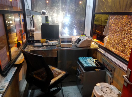 該車在臺州收費站下高速時,由于車身太長,司機沒察覺到車后半部分所載的傾斜的大米,出收費站時也沒有留意觀看后視鏡,導致傾斜的大米直接把五號收費亭防撞鋼管和收費亭邊窗玻璃撞壞,發出巨大響聲。收費班長陳幸聞聲后立刻跑到崗亭察看,五號車道右前方的防撞欄被撞斷,右側玻璃破碎,五號崗亭內工作臺上、地面上全是玻璃碎渣,所幸當時崗亭內無人在崗,沒有造成人員受傷。