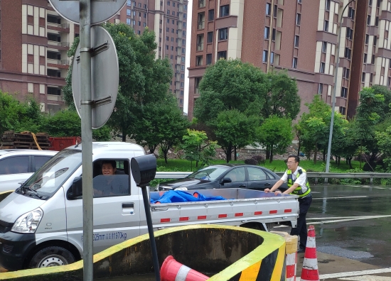 駕駛員告訴工作人員,因為錯過高速上的服務區而沒有加油,想著馬上就到了,結果收費站就在眼前突然沒油了。此時已經過了十多分鐘,工作人員提醒駕駛員打12122報警電話,求助拖車。當得知拖車費用需要350元左右時,駕駛員拒絕了,表示自己聯系朋友,很快就會送油過來。等了許久,駕駛員的朋友遲遲未到,為避免堵塞車道,郭斯泓便和駕駛員商議,車子放空擋,由自己試下在后面推。見能推動,便冒雨將車推至收費崗亭。在司機繳納了通行費后,又將車子推到了外廣場的安全區域等待。駕駛員連聲道謝,回到崗亭的郭斯泓衣服濕透,分不清是汗水還是雨水。