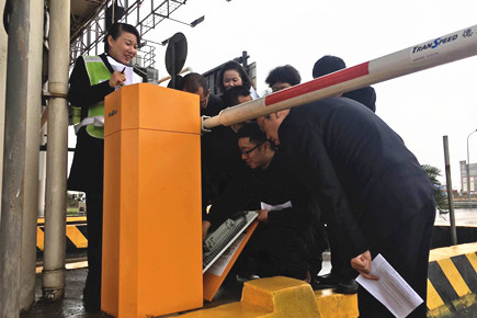 綿綿細雨中,維養中心的師傅仔細地向各學員分析各種情況出現的時候應當采取的措施和具體施行的步驟,并親手示范操作給他們看。各班班長們對平時工作中出現的故障問題也一一進行了提問并學習如何解決:欄桿不會落下,可以由三個方面去判斷和修理;稱臺隊列和重量問題可分兩個原因去進行處理操作;車道系統問題可從鍵盤、打印機和讀寫器這幾個方面入手去解決……