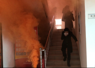 隨后,溫嶺西收費所組織全體員工模擬親身體驗火災逃生演練。根據安排,以所長王小勇為組長,各所助、班長為成員的緊急疏散應急領導小組成立,明確逃生線路以及集合地點等演練內容。一切準備妥當后,員工分布在收費所管理房各處,模擬日常辦公。隨著煙霧彈的蔓延,逃生演練正式開始。首先由發現火情者撥打模擬火災報警電話,報告起火具體位置與火勢的大小,請求支援,同時報告所長,通知人員離開現場。參演人員立即用濕毛巾捂住口鼻,彎下身子盡量避開濃煙,進行緊急撤離。只見疏散引導員葉俊在三樓樓梯口指揮大家撤離,統計疏散人數,清查本層各寢室、洗漱間后撤離;疏散引導員陳豐平在二樓樓梯口指揮人員撤離,統計疏散人數,清查本層各辦公室、寢室、衛生間后撤離;疏散引導員李寧在所大門指揮人員撤離,統計疏散人數,清查本層會議室,寢室后撤離。撤離人員達到指定集合地點,由狄文琦清點核實人數,匯總后向所長匯報情況。所長王小勇確認全體人員安全撤離后,對本次演練進行點評,并宣布逃生緊急疏散演練結束。