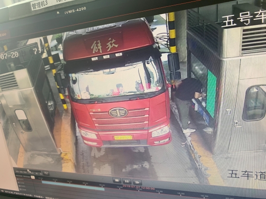 經過監控查找,馬上鎖定了一輛車牌為“豫”字開頭的大貨車。原來當時因駕駛室距離窗口較遠,司機下車付錢,監控中清晰顯示司機在掏錢繳費時三百塊現金從口袋里掉到車道上,但是司機因為趕路絲毫沒有發覺。確認失主后,工作人員查詢司機電話并取得聯系,告知其遺失三百現金,在通過微信確認身份后,李寧將錢轉給了司機。