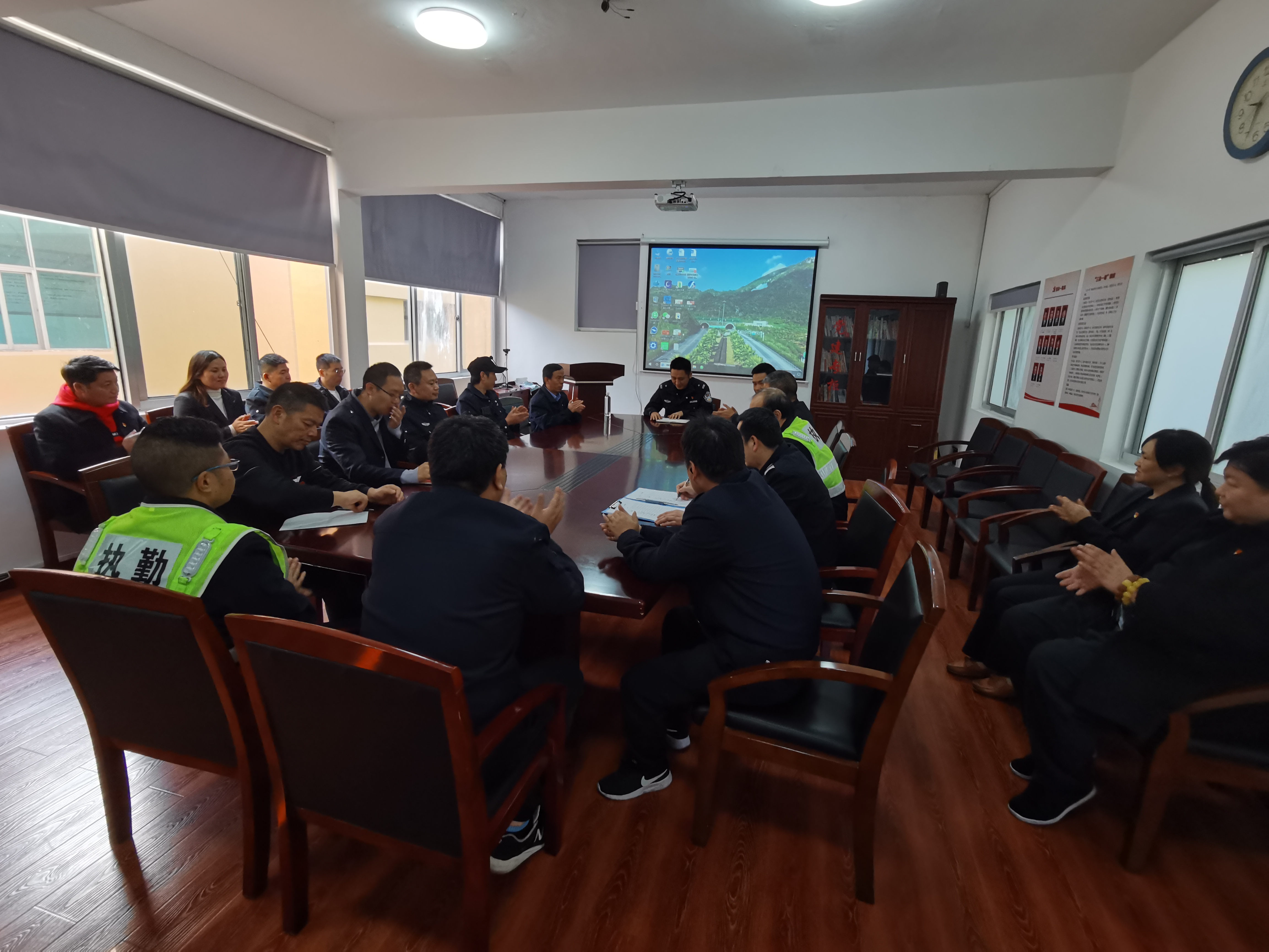 徐隊的課件內(nèi)容是滿滿的干貨,對我們隧道所執(zhí)勤工作非常受用,隊員們聽得非常認真仔細,為了共同的隧道安全行車目標,我們臺溫雙方共同努力,守土有責敢擔當,履職盡責要作為。