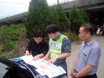 圖為公司安全總監項同富與高速路政人員在現場討論整治方案