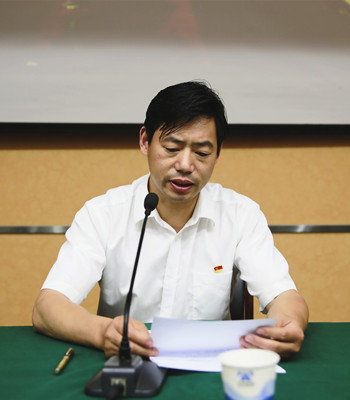 圖為黨群部主任傳達相關文件精神