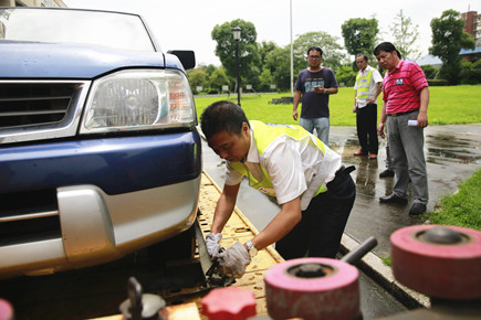 公司開展道路事故車輛應急施救拉動演練