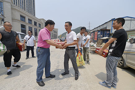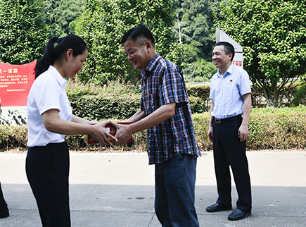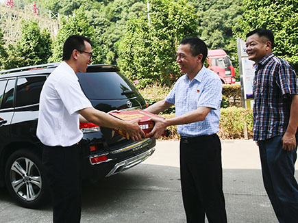 張建平親自將一箱箱的消暑慰問物資送到每位一線工作人員手中,向他們表達公司的謝意。同時詢問了工期進展情況,當前存在的困難和問題,要求他們注意安全,合理安排工程,保證施工質量,上下同心,不懈努力,確保11月11日主線通車目標的實現。