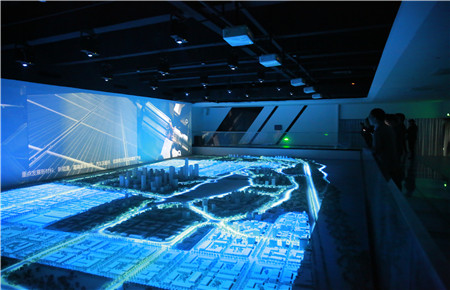 考察團一行現場參觀了集聚區規劃展示館,聽取了集聚區發展歷程、核心區塊開發建設、遠景規劃設計等介紹,認真了解新區的特色資源和城市空間布局等情況。