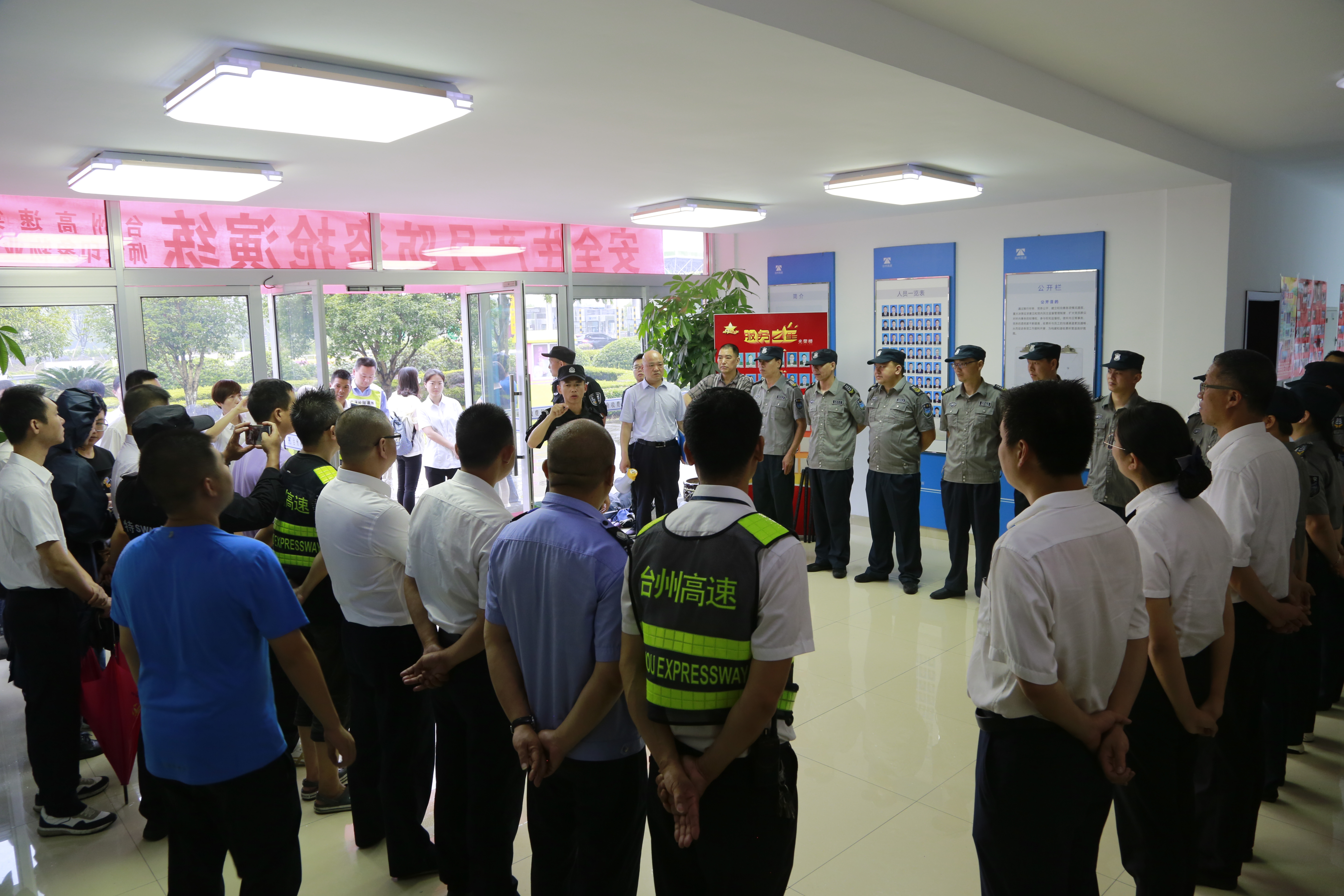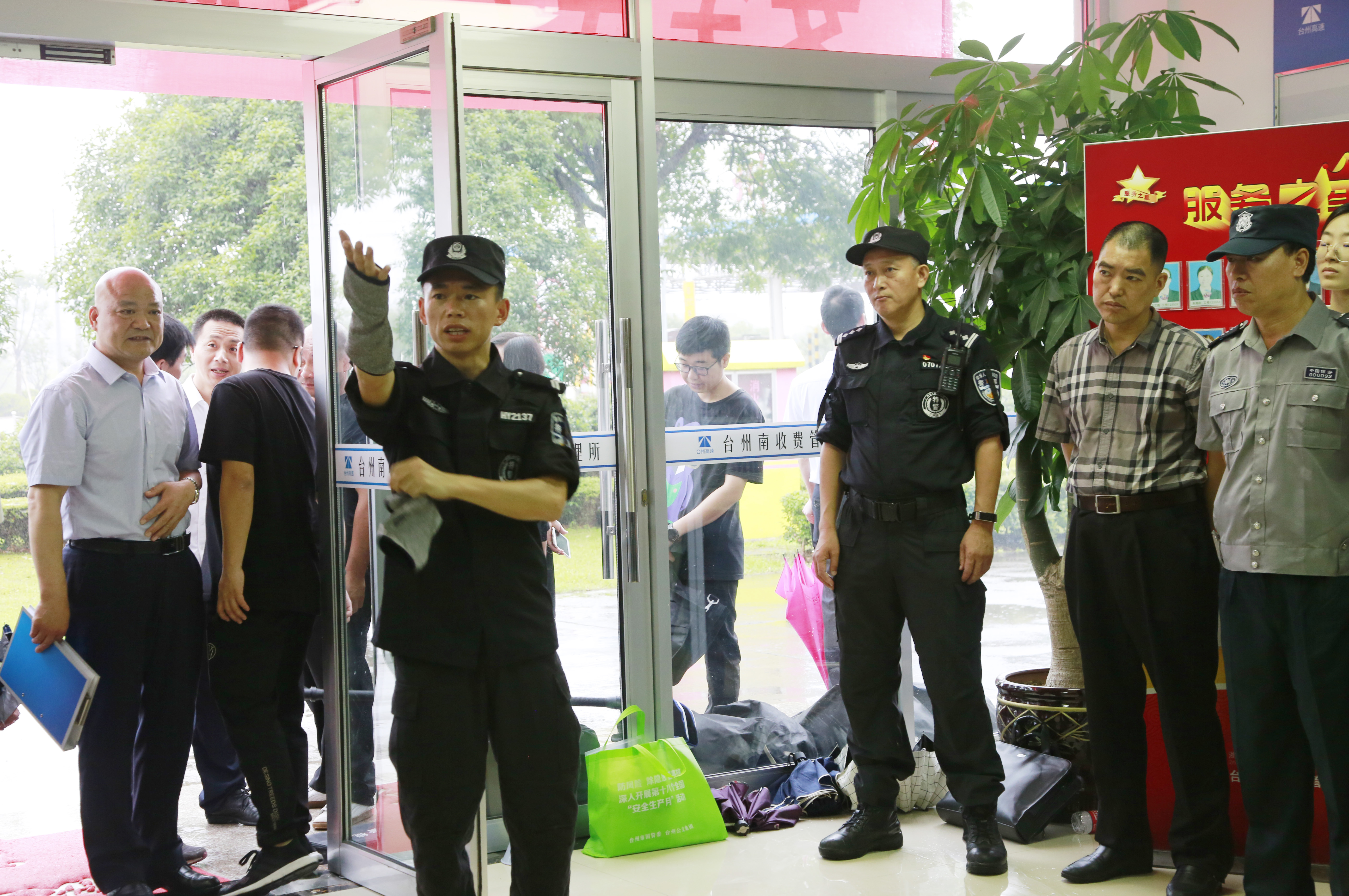 6月25日上午,臺州高速集團在臺州南收費所組織開展防盜搶應(yīng)急演練活動。各所、中心、子公司以及浙師大印象物業(yè)臺州分公司相關(guān)人員參加活動。集團副總經(jīng)理章海峰、安全總監(jiān)項同富到場觀摩演練。