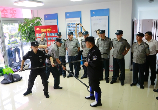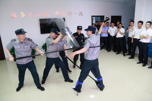 圖為物業(yè)人員現(xiàn)場練習(xí)器械使用