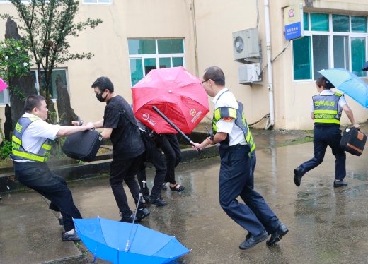隨后,多名參演員工冒雨模擬收費崗?fù)ず土嘘犗聧徳庥觥按跬健睋尳俚那榫伴_展防盜搶演練?,F(xiàn)場,2名蒙面歹徒執(zhí)仿真刀、軟棍威脅收費員交出現(xiàn)金,危機之中,收費站立即啟動應(yīng)急處置預(yù)案并報警求助,收費員有效與歹徒周旋,應(yīng)急處置組人員迅速攜鋼叉、橡膠棒、勞動工具等赴現(xiàn)場支援,值班領(lǐng)導(dǎo)、收費班長、監(jiān)控員合力協(xié)作應(yīng)對歹徒,防盜搶演練順利結(jié)束。
