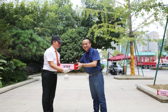 與此同時,集團總工程師江輝帶領工程部及收費所相關人員到院橋派出所和交警隊開展“送清涼”活動。江輝代表臺州高速集團對當地派出所和交警隊的履職盡責、通力協作表示衷心感謝,并叮囑他們在高溫天氣要做好防暑降溫工作。