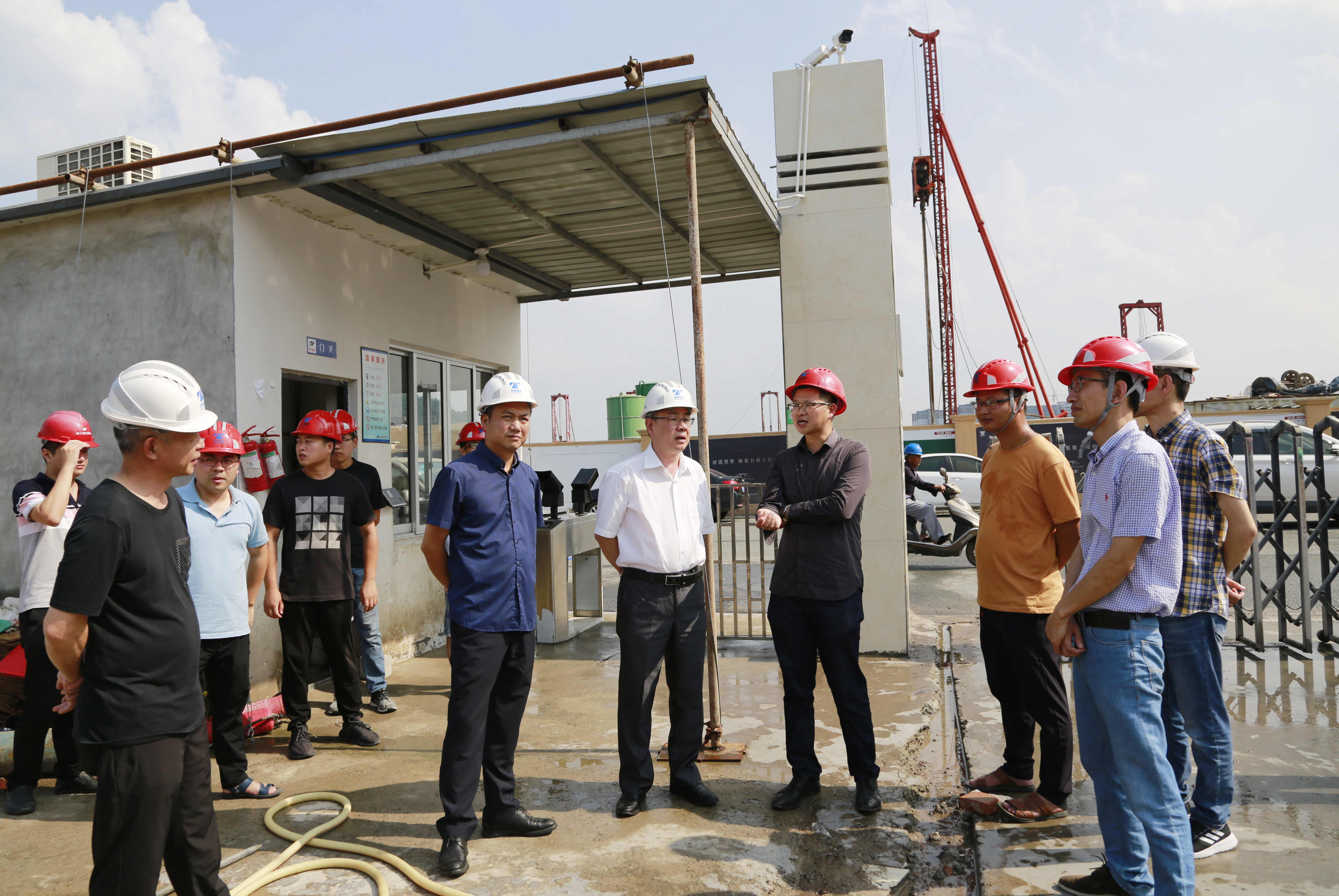8月12日,陳文波在羅小將的陪同下,趕往椒江文鼎苑、黃巖玖璽逸墅項目施工現場,檢查指導臺風過后工地復工準備工作。陳文波要求房產集團和施工單位要及時清溝排水、清理垃圾,抓緊修復損壞的物件設施,同時做好衛生防疫。所有人無論何時都要把安全作為頭等大事來抓,仔細檢查電力設施等不容易發現的險患,防止次生災害的發生,搶時間,抓復工,把臺損降到最低限度。
