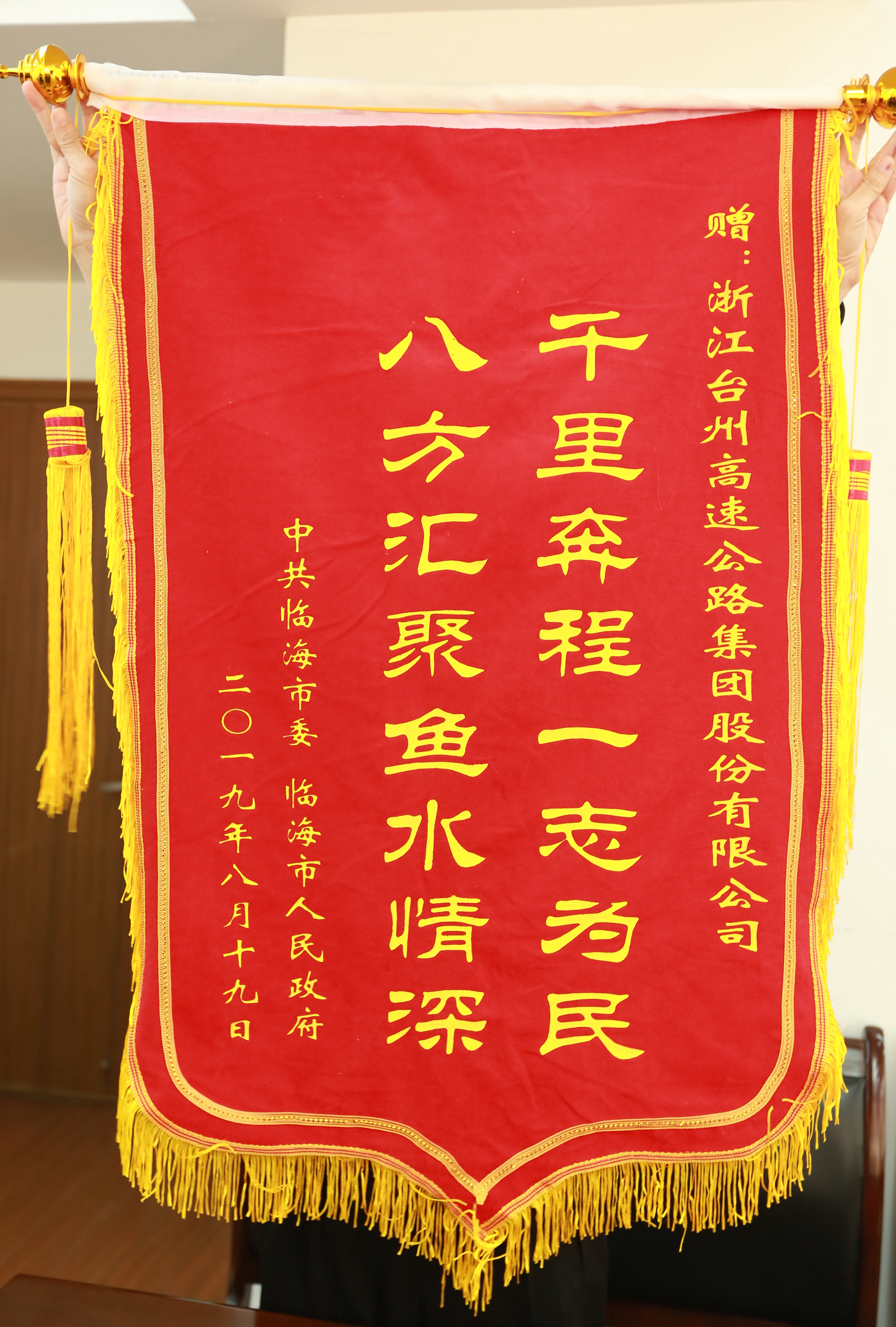【洪水無情人有情】臨海市給臺(tái)州高速集團(tuán)送來錦旗和感謝信