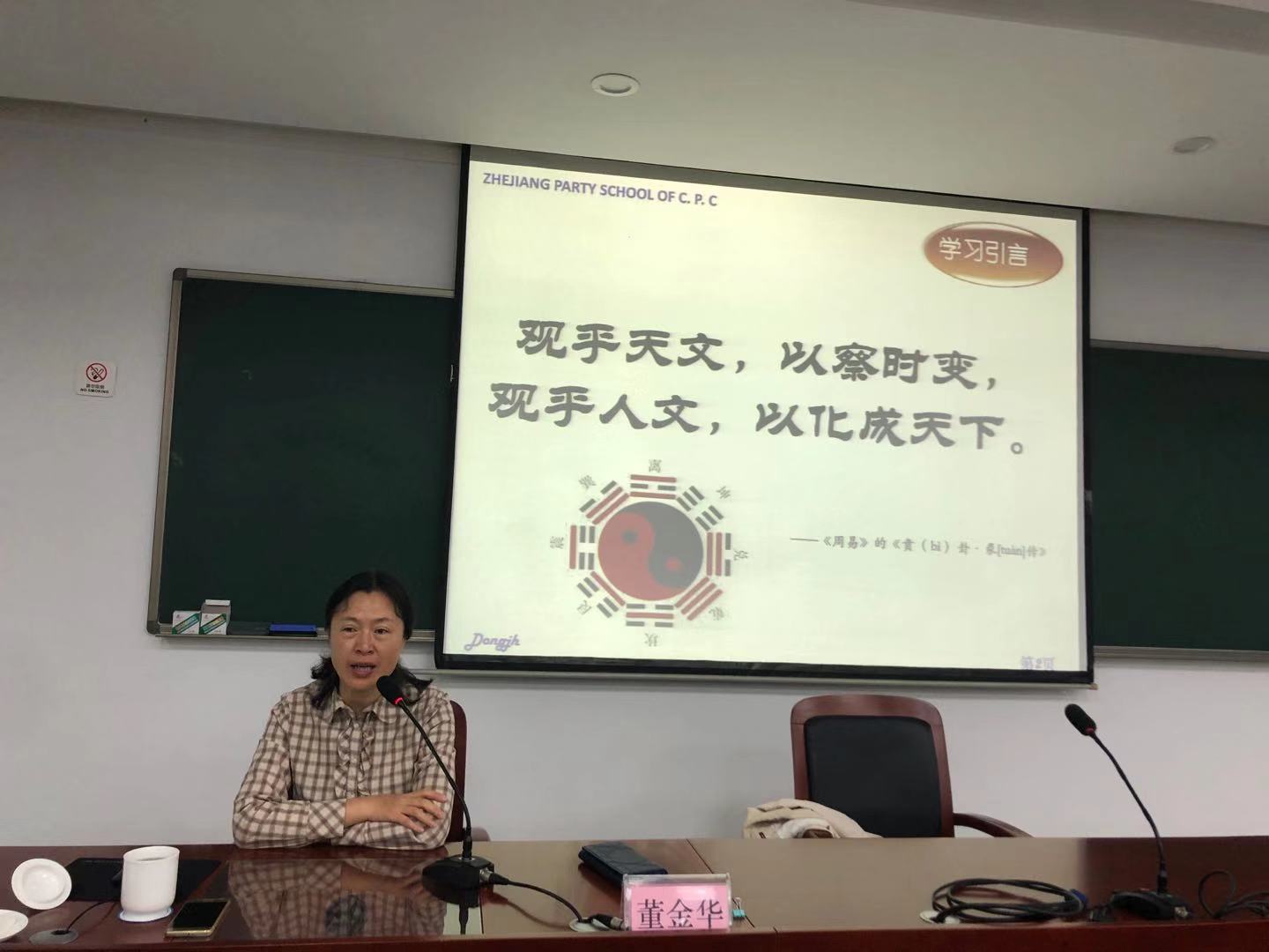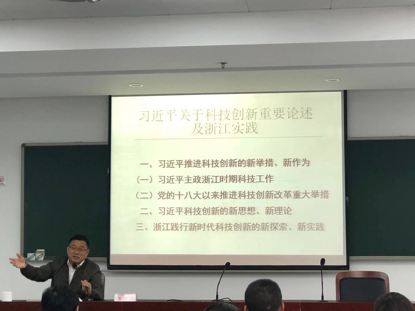 圖為浙江省科技廳教育培訓(xùn)中心副主任戴銀燕以《習(xí)近平科技創(chuàng)新及浙江實踐》為題授課