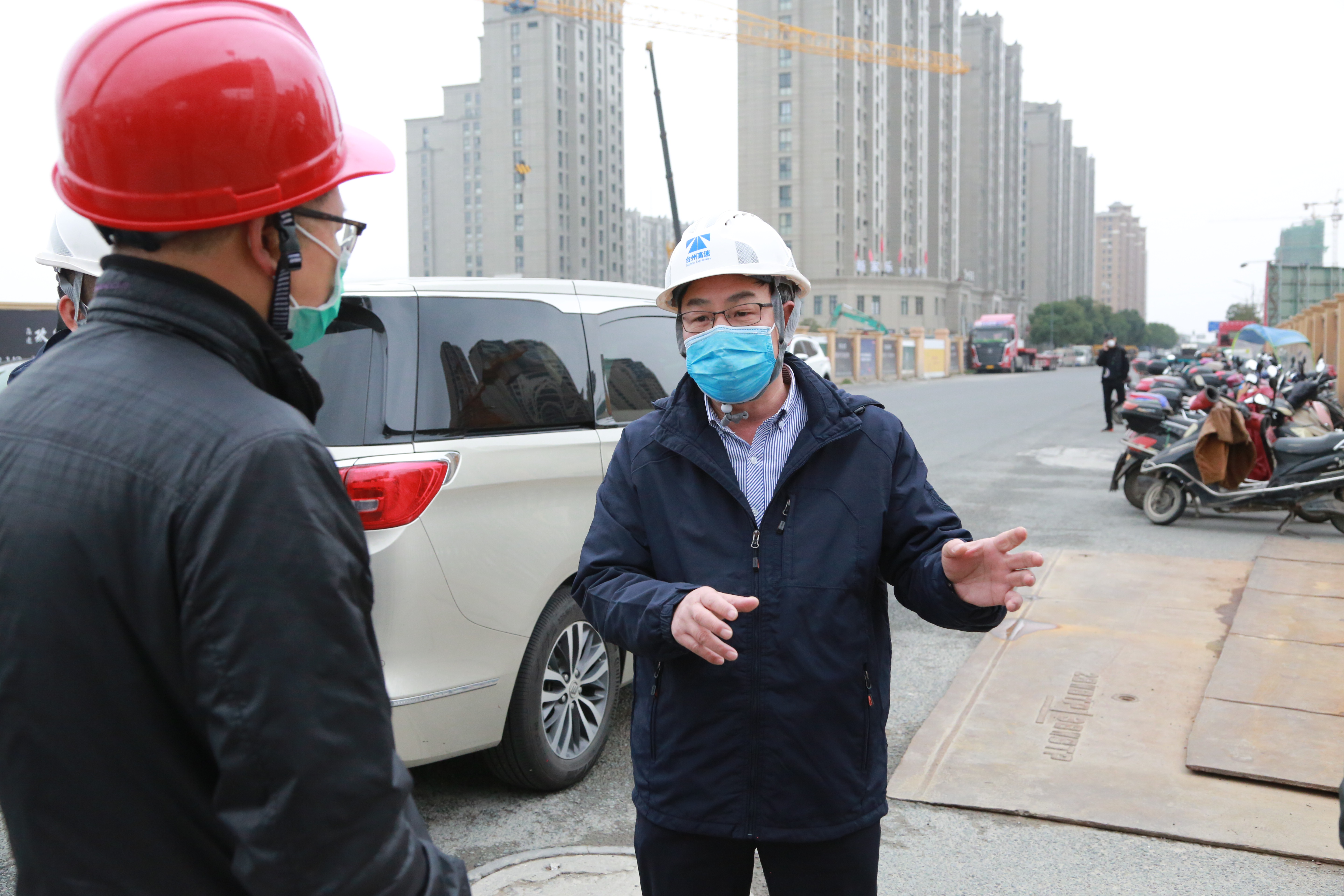 圖為陳文波在工地檢查防疫與復(fù)工工作
