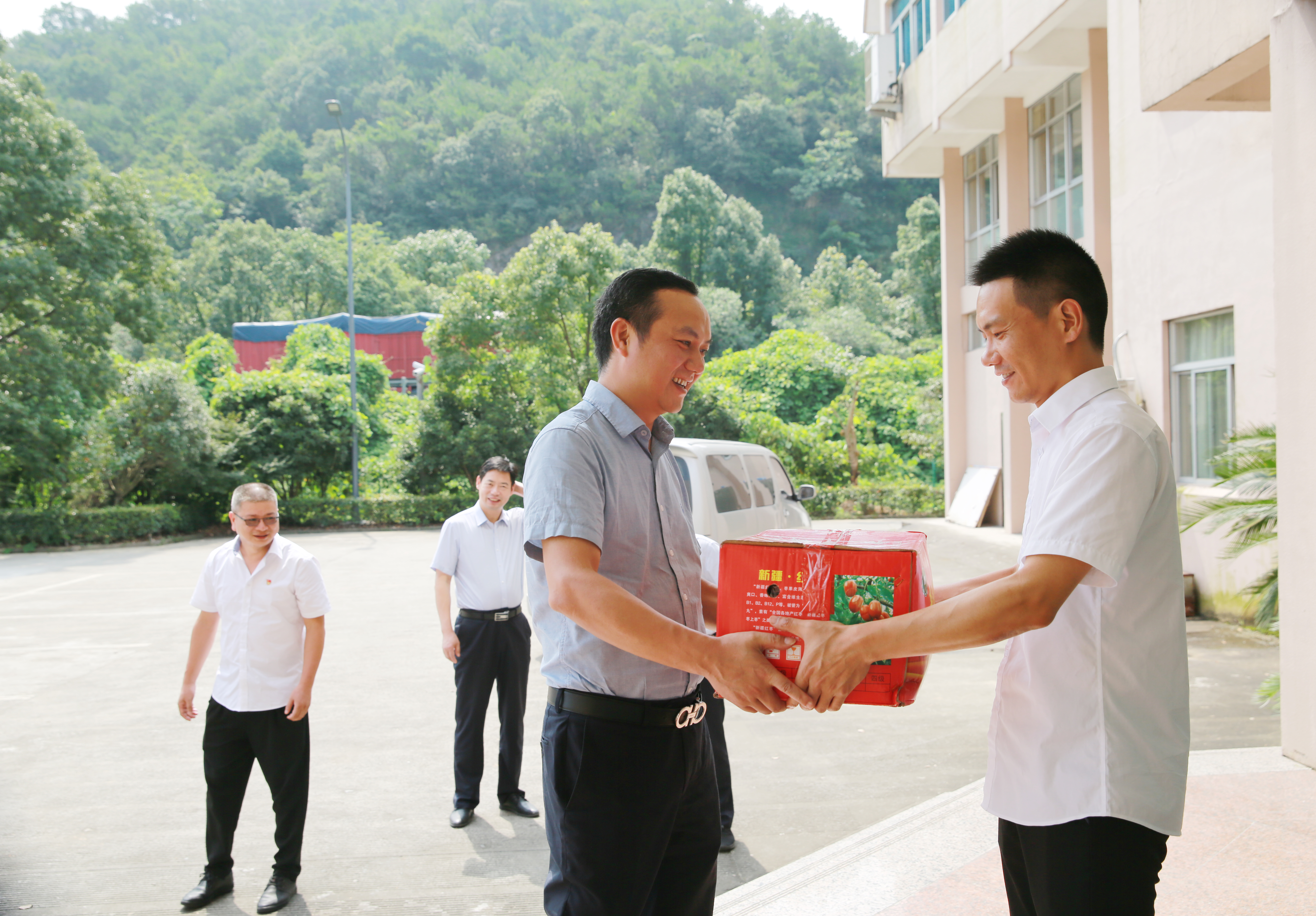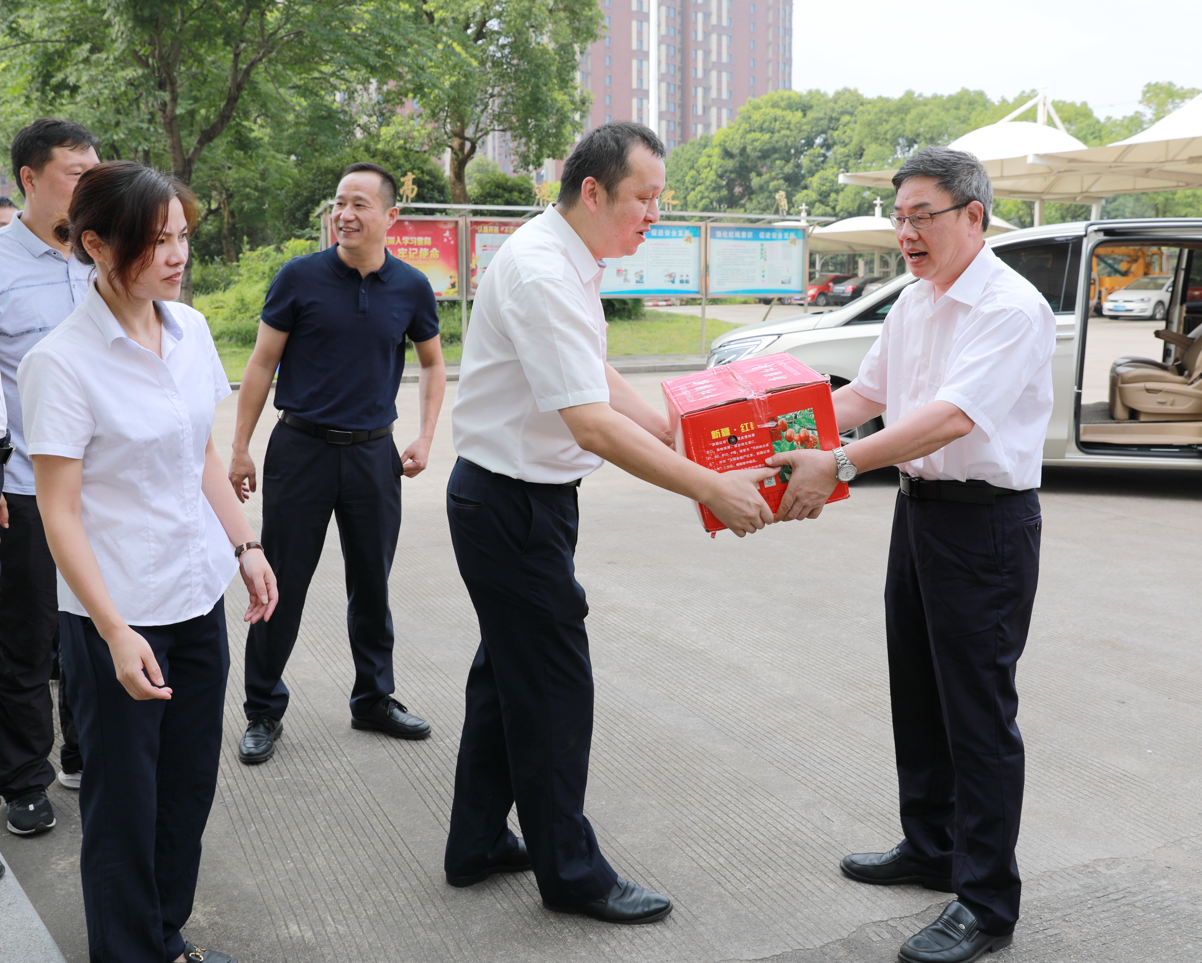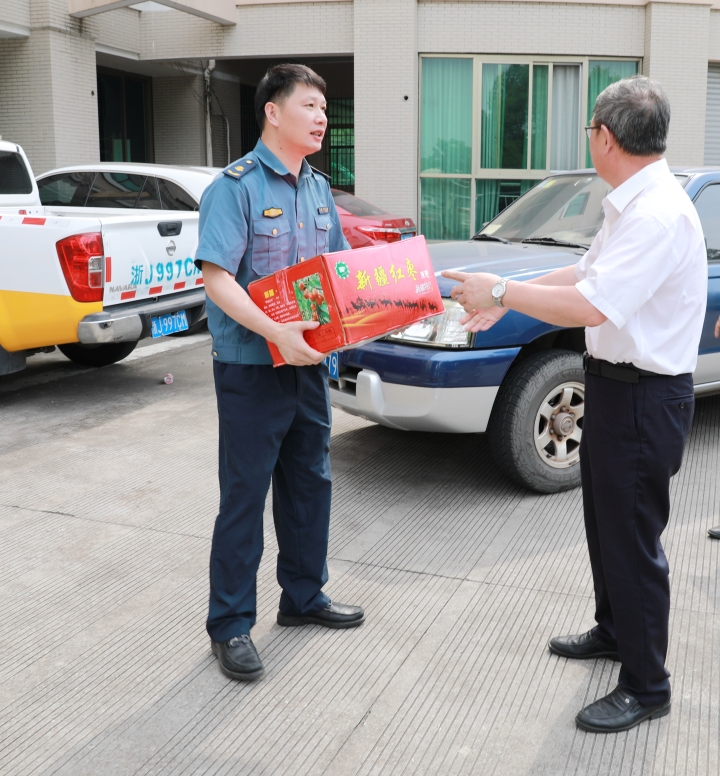 沁人心脾|臺州高速集團開展“夏日送清涼”活動 7月15日上午,臺州高速集團開展“夏日送清涼”活動。集團黨委書記、董事長、總經理陳文波,副總經理陳保衛、羅小將、章海峰、工會主席項同富兵分兩路,帶領送清涼慰問組同志,深入高速交警、路政、匯通養護公司、各收費所、隧道所、中心、子公司等單位看望慰問值守人員并送去慰問品,向冒著高溫酷暑辛勤工作的工作人員表示敬意和慰問。感謝廣大員工在高溫下堅守崗位、辛勤勞動,集團領導親手送上防暑降溫的紅棗、綠豆、蓮子、飲料等物資,為在炎炎夏日中堅持工作的一線廣大人員送去了絲絲清涼。