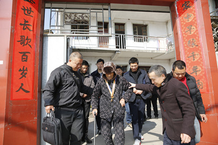 當來到百歲抗戰(zhàn)老兵的家中時,張建平立即上前緊緊握住老人家的雙手,在親切的慰問中遞上紅包,送上春節(jié)的祝福,并詢問老人家的生活情況和身體狀況。