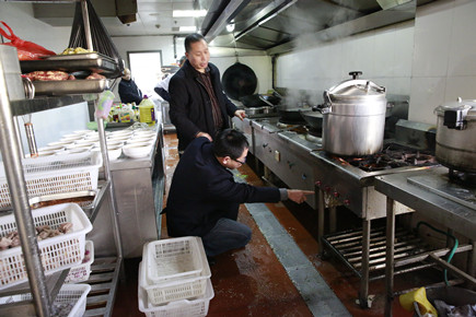 圖為公司副總經理董阿林在食堂檢查用火器具