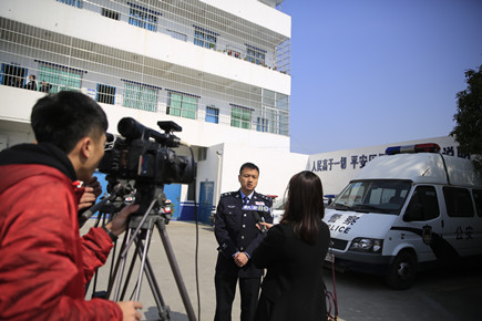 圖為記者在采訪北城派出所民警袁江明