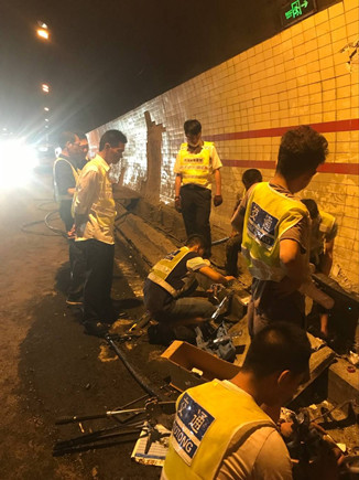 高壓電纜損壞,隧道停電,大溪嶺隧道所所長(zhǎng)助理羅鳴春和執(zhí)勤隊(duì)員李新波、王宇鵬火速參與搶修高壓電纜。7點(diǎn)43分,公司工程部機(jī)電維養(yǎng)中心當(dāng)班人員與施工單位趕到事故現(xiàn)場(chǎng),一邊清理一邊搶修。