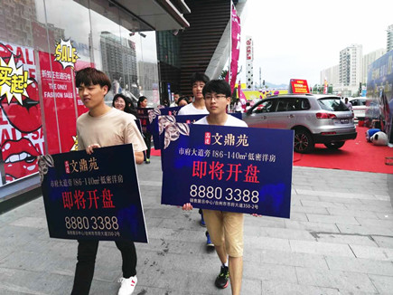 圖為文鼎苑銷售部人員在商場內開展宣傳活動 在活動現場,參加人員一邊做陶藝,一邊詢問樓盤詳細情況,氣氛十分熱烈。同一時間,在萬達廣場和銀泰商場內,文鼎苑銷售部的帥哥美女們手持樓盤開盤廣告宣傳牌,他們一個個面帶笑容、朝氣蓬勃、專業(yè)細致地為前來咨詢的客戶講解樓盤的具體情況。宣傳隊伍所到之處,吸引了大批客戶的關注。 以上活動是文鼎苑項目首批開盤前期營銷推廣中的其中一個環(huán)節(jié)。為營造良好的銷售氛圍,在前期,仁和公司通過大型戶外廣告、微信公眾號實時更新、新聞媒介重點發(fā)布等,陸續(xù)進行多方位媒體宣傳攻勢。同時,謀劃舉辦了“文鼎苑家風征集活動”、立夏、母親節(jié)、“520與愛相約”、端午節(jié)、兒童節(jié)等節(jié)假日專題宣傳活動。此外,還安排了銷售人員在周末深入椒江拆遷區(qū)進行拓客派單活動。 目前,高速房產集團的員工們正戮力同心,奮力拼搏,為全力打響文鼎苑首期開盤炮而努力奮戰(zhàn)。 包啟曉