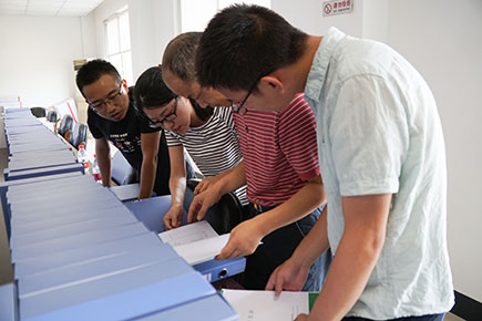 圖為省公路局檢查組檢查內頁資料現場