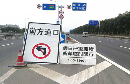 圖為岔口臨時限行指示牌