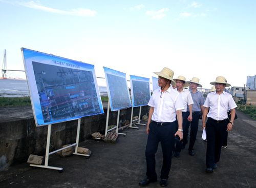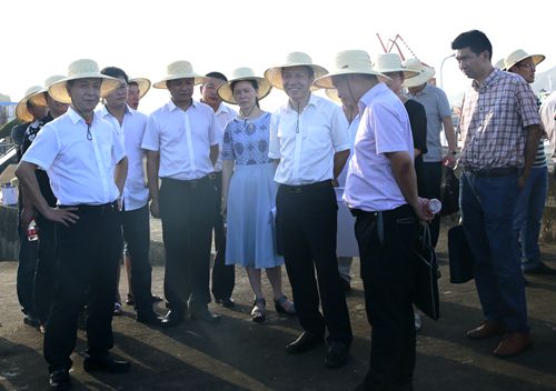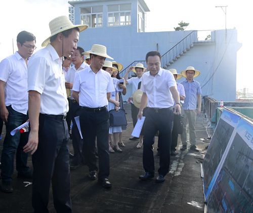 烈日下,調研組分別實地察看了海門港埠碼頭與新港區規劃建設用地。結合海門港埠總公司現狀用地區域圖及新碼頭選址方案圖展板,羅小將詳細介紹了港區碼頭目前區域現狀及新港區選址規劃設想方案,提出了港區剩余土地利用、建設項目規劃許可、新港區建設用地征遷安置等需要政府相關部門和椒江區政府大力支持的問題。