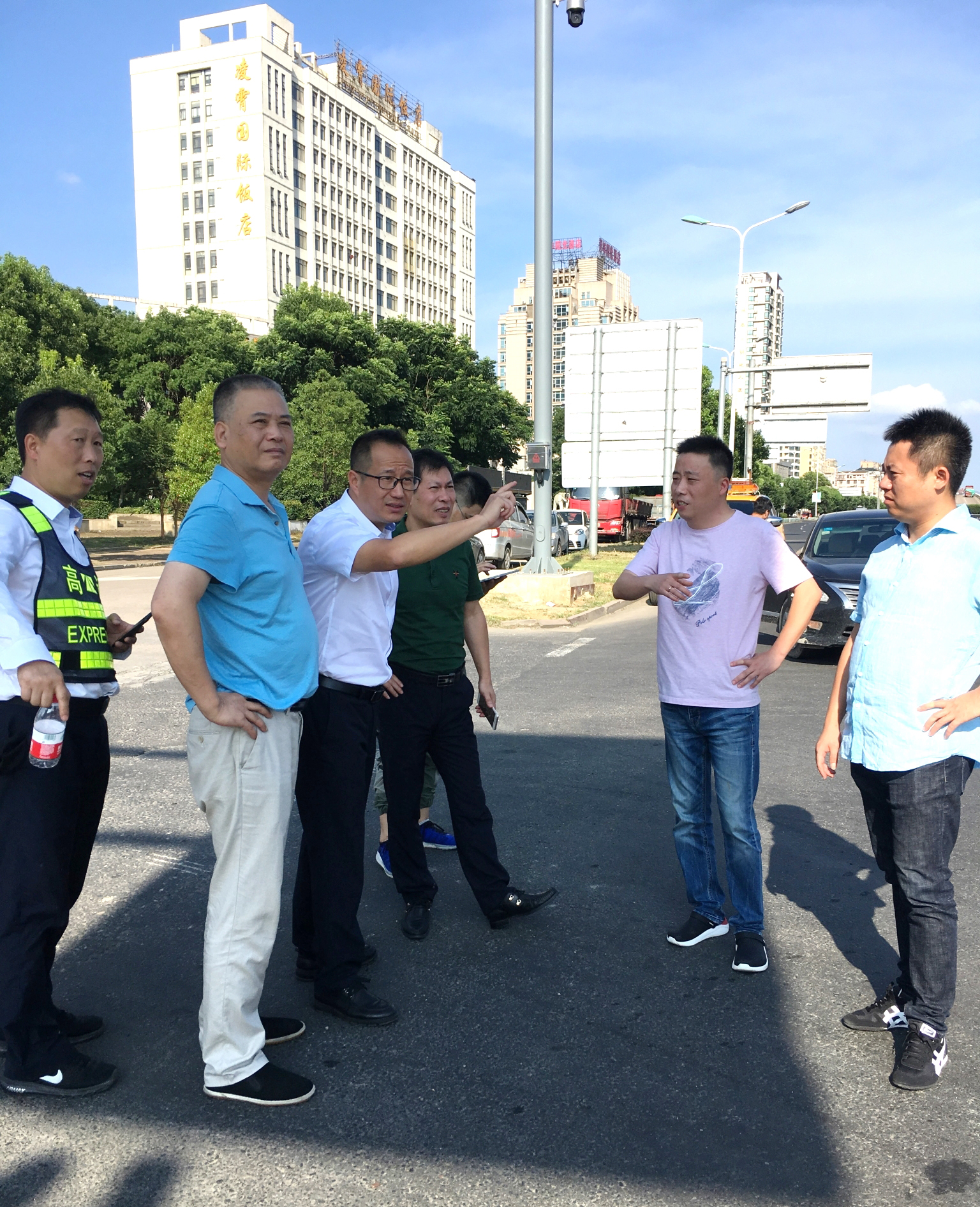7月23日下午,集團副總經理章海峰帶領征費管理部、工程部機電設備維養中心負責人對沿線四個收費站入口地磅選址進行現場踏勘。集團總工程師江輝、各收費所負責人陪同。