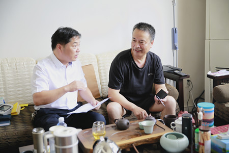 圖為老干部陳惠良開(kāi)心地談股權(quán)轉(zhuǎn)讓事宜