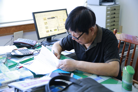 圖為公司總經(jīng)理助理了解摸底老干部的持股情況
