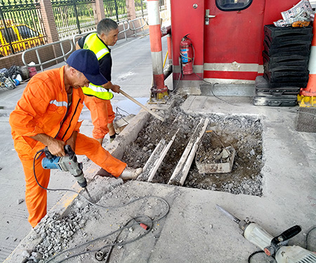 8月8日中午,省機電設計院施工人員率先對臺州收費所一號車道進行自助發卡機基礎施工工作。屆時,該所兩個進口車道都將安裝自助發卡機,整個工期預計需要一個月時間。