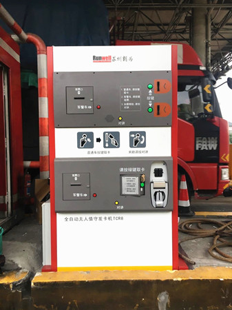 經過對比、篩選,公司最終確定選用由蘇州朗為控制技術有限公司生產的TCR86-10型號的自動發卡機,該型號發卡機有上下兩個取卡區共四個卡口,分別提供給大小車司機使用,其中下卡區還配置了雙軸折疊式機械手作為發卡和送卡的延伸裝置。當司機按下取卡按鈕時,卡機會自動將卡傳送給機械手,機械手抓卡后,伸展臂長,將卡外送一段距離,方便用戶輕松取卡,當用戶取卡后該裝置又會自動縮回到面板中,以防刮擦。 該發卡機還有一個優勢,內部共設置四套發卡機構(每套能容納250張卡),當某一套卡發完或出現故障時,可以自動切換到另一套工作,確保了系統具有充分的備份和容錯能力。另外,它還能兼容人工發卡,實現系統無縫對接。
