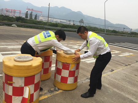 公司沿線四個收費站平穩(wěn)實現(xiàn)路面養(yǎng)護施工期入口轉換 因G15沈海高速臺州段于2017年10月28日零時至11月16日24時封閉施工,施工期間,公司所轄路段溫嶺西、臺州南、臺州、臨海南實行交通管控,公司沿線各收費站、工程和交警、臺州市公路局等部門單位緊密配合,多措并舉,平穩(wěn)實現(xiàn)收費站入口轉換。 為配合公司道路養(yǎng)護和黃土嶺右洞改造施工,公司征費系統(tǒng)提前在各收費站入口LED屏上發(fā)布施工信息,連夜安排趕印50000份施工公告發(fā)放至四個收費所,提醒過往司乘人員提前規(guī)劃施工期間的出行路線。
