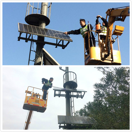12月12日,集團工程養(yǎng)護部機電設(shè)備維養(yǎng)中心主任助理葉俊及中心幾名隊員,站在凳高車上,頂著寒風,利用事先準備的手動洗車水槍、拖布等清潔工具對公司路面攝像頭太陽能板進行一一清洗,使原先布滿污垢的面板立刻變得光亮如新。 集團沿線共有40多塊太陽能板。近日,維養(yǎng)中心在設(shè)備巡檢中發(fā)現(xiàn)路面攝像頭太陽能板普遍存在充電電流不足的現(xiàn)象,致使電瓶無法完全充電,一到陰雨天氣或晚上就不能保障攝像頭正常運轉(zhuǎn)。這些太陽能板由于使用年限久(基本都在10年以上),部分面板晶片已出現(xiàn)老化破損,加上冬季日照時間短、強度低等自然因素影響,導致設(shè)備無法有效運轉(zhuǎn),但如果全部更換不僅成本高,而且費時又費力。