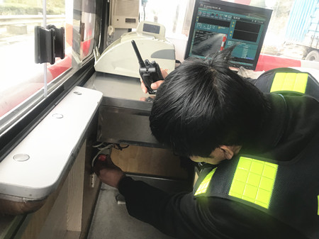 圖為工作人員自查崗亭報警器 此外,工作人員對收費區(qū)域內的消防、交通、崗亭設施設備,以及票證、通行費等安全情況進行了一次自查,確保安全用電,做好消防和防盜措施,并對當班收費員進行現(xiàn)場稽查,檢查大家在當班期間的崗亭環(huán)境是否衛(wèi)生,臺面是否整齊,著裝是否統(tǒng)一,有無佩戴上崗證,儀表舉止是否規(guī)范,文明用語是否親切,以及抽屜大額現(xiàn)金有沒按規(guī)定放入保險箱等。大家的合力檢查和相互配合,為春運安全暢通、防寒防凍工作提供了強有力的保障。 陳瑩