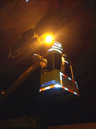 1月31日上午,該所執(zhí)勤隊(duì)員在隧道巡邏時(shí)發(fā)現(xiàn)溫向快車(chē)道一盞照明燈被超高車(chē)刮蹭而導(dǎo)致燈罩損壞,燈頭及組件掛落蕩在橋架下,很容易造成二次事故而引起人員傷亡。一發(fā)現(xiàn)該隱患,隊(duì)長(zhǎng)李新波立即向所長(zhǎng)李立巍報(bào)告險(xiǎn)情,馬上聯(lián)系高速交警、指揮中心人員,要求立即封道搶修。 大溪嶺隧道所在險(xiǎn)情發(fā)生的第一時(shí)間作出緊急措施,兩名執(zhí)勤隊(duì)員在溫向隧道洞口卡口預(yù)警,李立巍向維養(yǎng)中心調(diào)來(lái)登高車(chē),三名電工隨即進(jìn)隧道維修脫落的燈罩。經(jīng)過(guò)25分鐘的快速搶修,目前設(shè)備已能正常使用,隧道恢復(fù)通行。 李新波