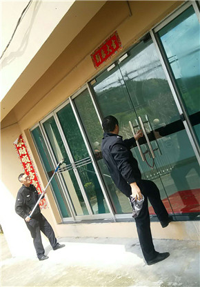 圖為當值班組隊員擦拭站所玻璃門