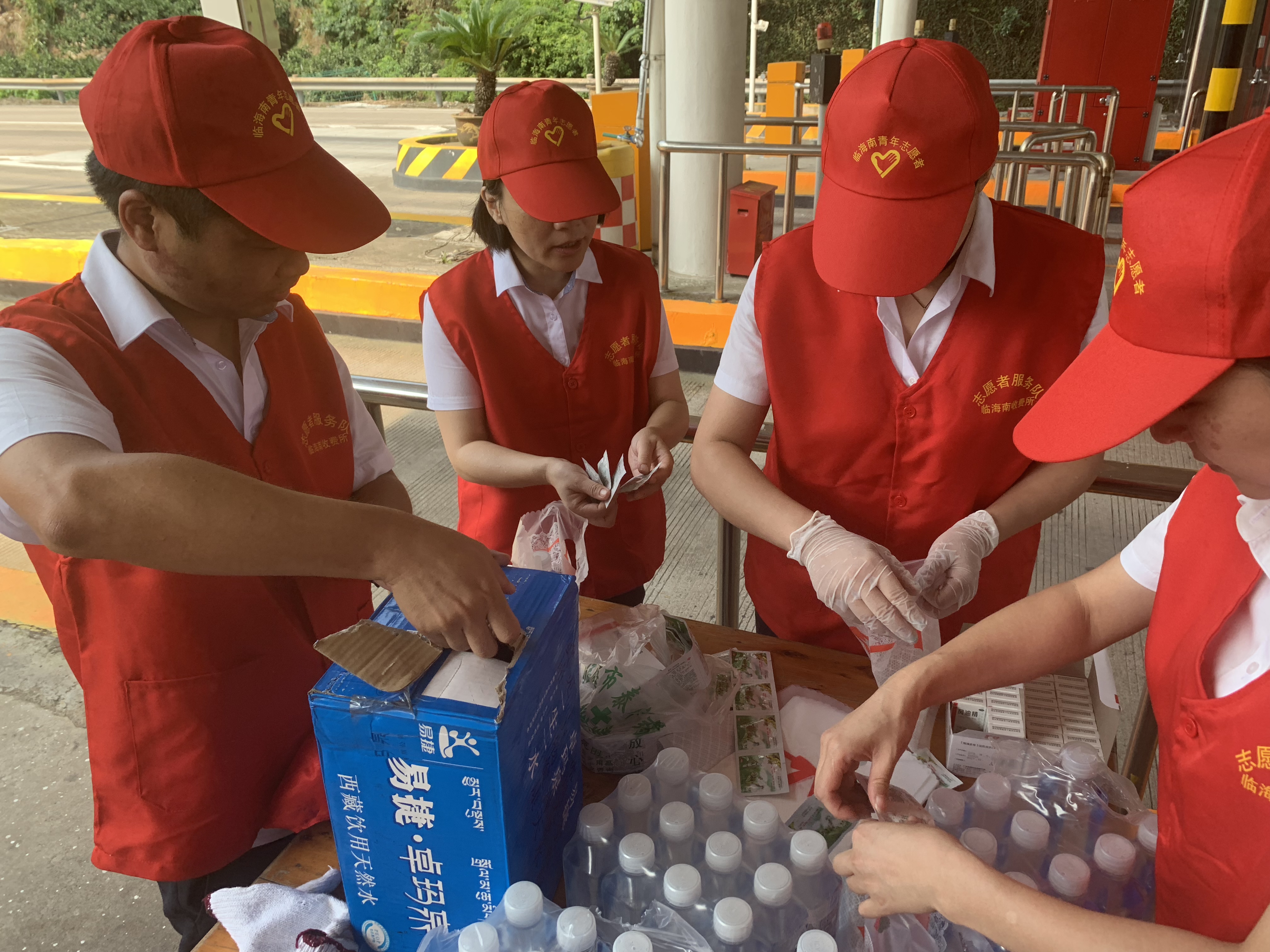 服務在崗,情系災區 ——臨海南收費所組織開展“獻愛心”活動 8月14日中午,臨海南收費所車道安全島內搭起臨時愛心服務臺,準備了禮品袋、礦泉水、風油精、人丹等物品,為過往司乘人員免費提供解暑用品。 高溫天氣中,該所員工身穿耀眼的“紅馬甲”,面帶微笑,顯得格外耀眼動人。