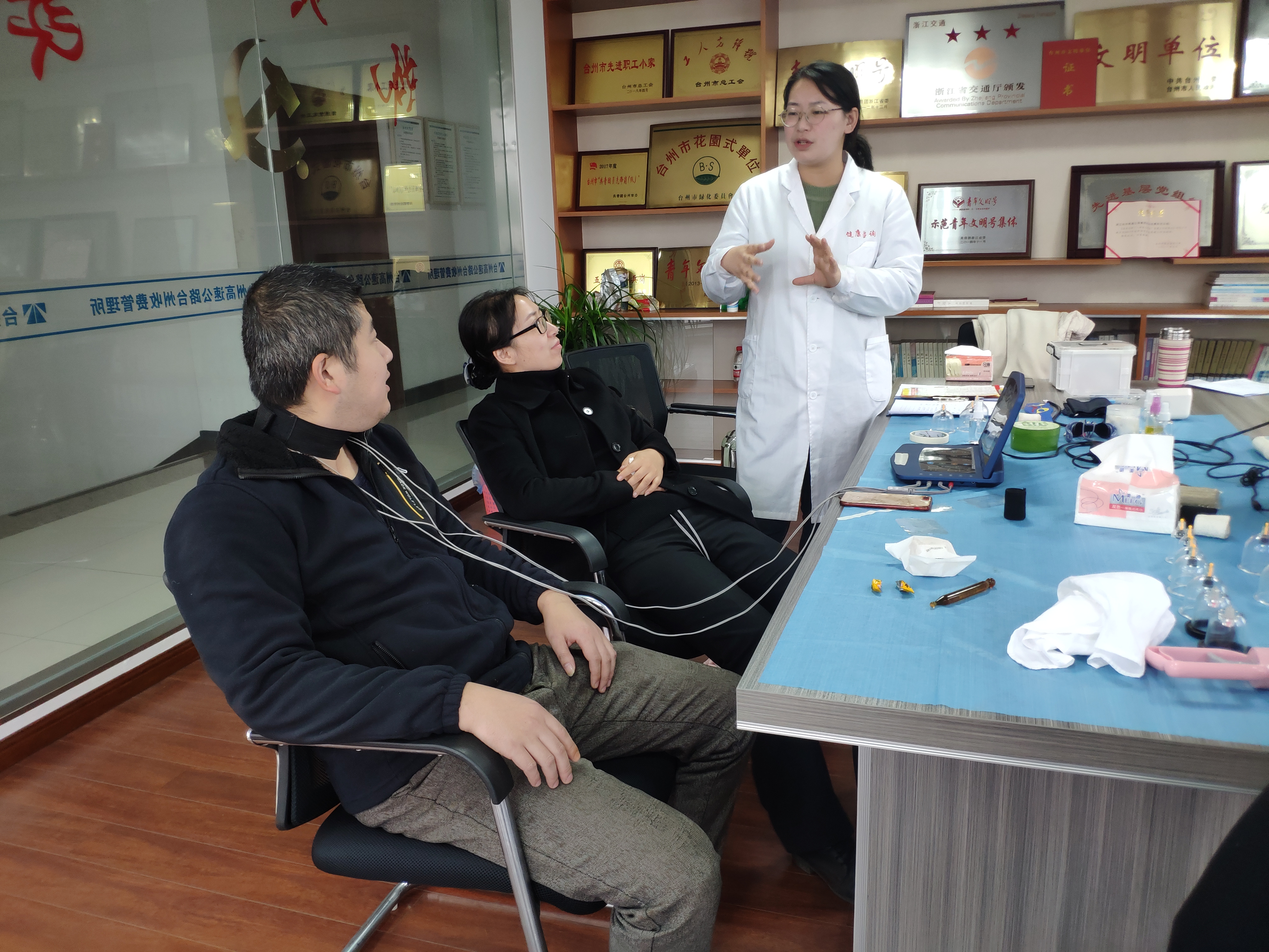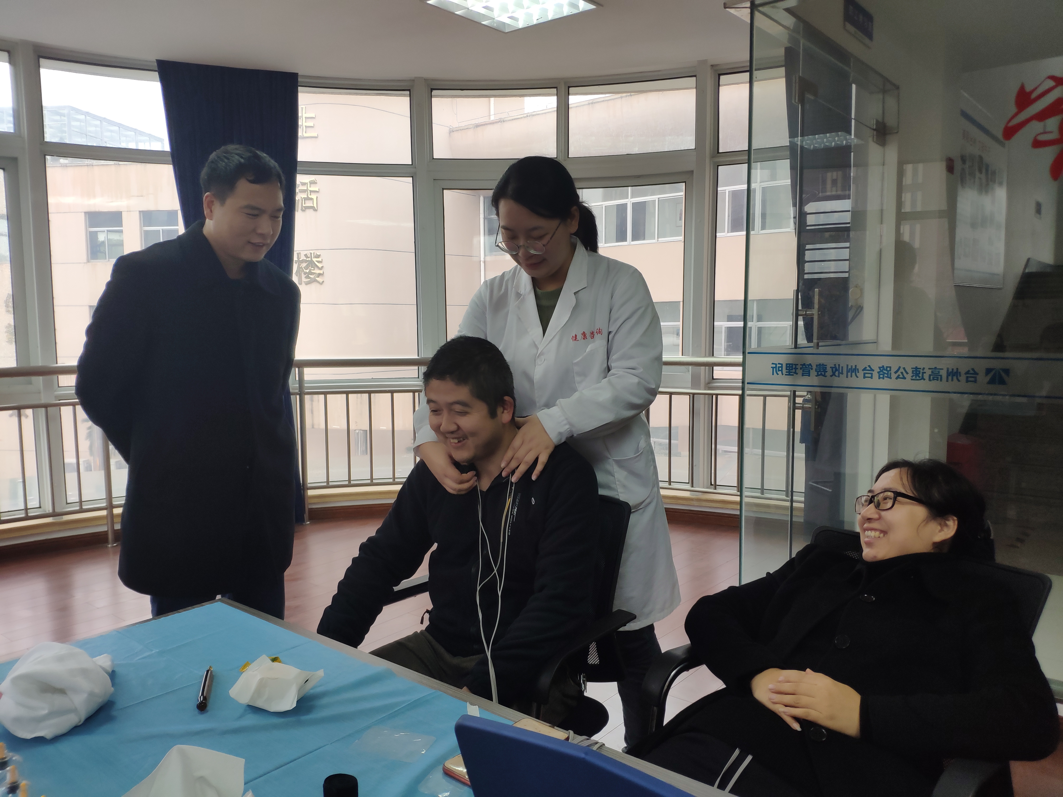 中醫(yī)理療走進(jìn)身邊 12月23上午,來自上海中醫(yī)大科創(chuàng)基地健康咨詢師萬老師走進(jìn)臺州收費所,為所里帶來中醫(yī)理療健康咨詢。本次活動包含血壓、頸椎、腰椎調(diào)理、脾胃虛寒等與我們身體生活息息相關(guān)的養(yǎng)生咨詢。