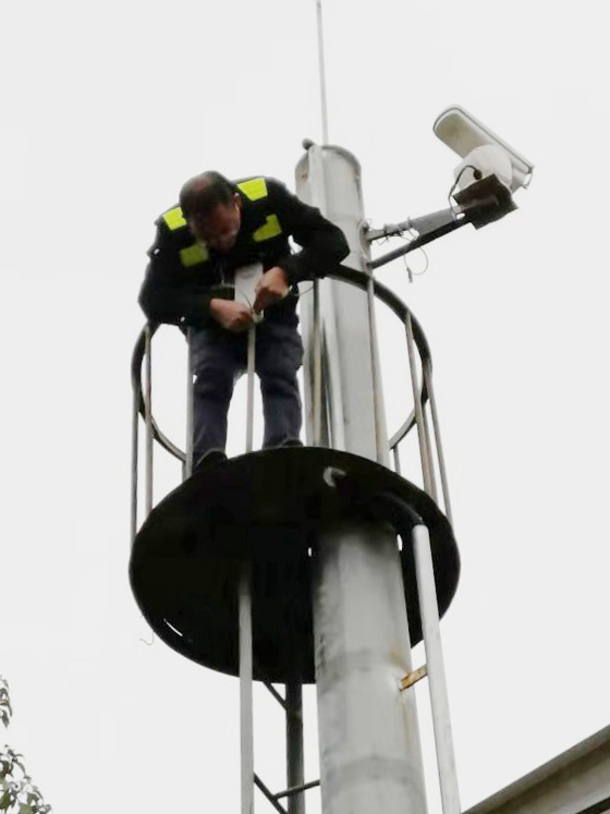 圖為搶修人員在安裝無線網橋 面對難題,中心隊員并沒有退縮,而是積極面對、集思廣義,想到了利用無線網橋點對點的橋接通迅功能,將斷點處的攝像機視頻信號通過網橋無線連接,傳輸到臨近攝像機光端機上,隨后再一起將信號傳輸到監控中心,實現網絡和通迅共享的解決方案。這既可以避免因封道施工造成車輛擁堵,又可以為公司節省近萬元維修費用。然而在實際操作中,還要解決另外一個棘手的問題,就是無線網橋供電電流和電壓無法直接從攝像機電瓶中獲取,但這些同樣難不到中心隊員們,他們又想到了之前路面拆卸下來逆變器,利用它的逆變原理成功解決網橋供電問題。 說降就降的氣溫,加上路面飛馳而過的車輛帶來的陣陣寒風,吹得隊員瑟瑟發抖。但他們都知道要是晚一天修復網絡,路面就會多一份隱患。在中心負責人的帶領下,搶修人員按照之前設定的方案,一人負責云臺上面的無線網橋安裝,另外兩人負責地面逆變器及網絡的安裝。由于大家分工明確、配合默契,不到半天時間,路面兩處斷點視頻信息再次出現在了監控中心的大屏上。 項寅曉