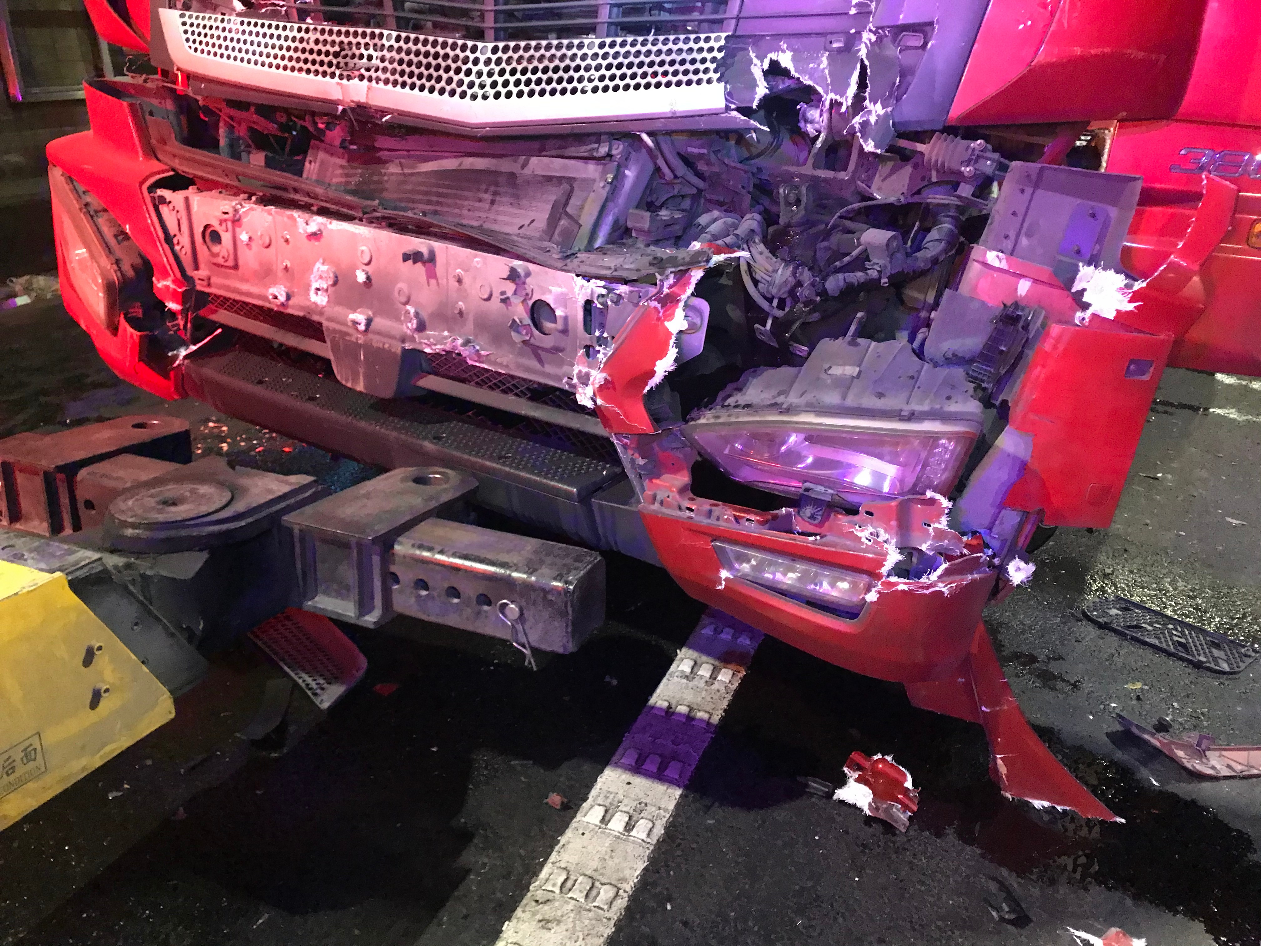 1月14日晚21:30分,甬臺溫高速寧波方向距離臺州南收費站約5公里的路段,一輛半掛車與一輛小轎車發(fā)生碰撞,現(xiàn)場急需一大一小兩輛拖車。