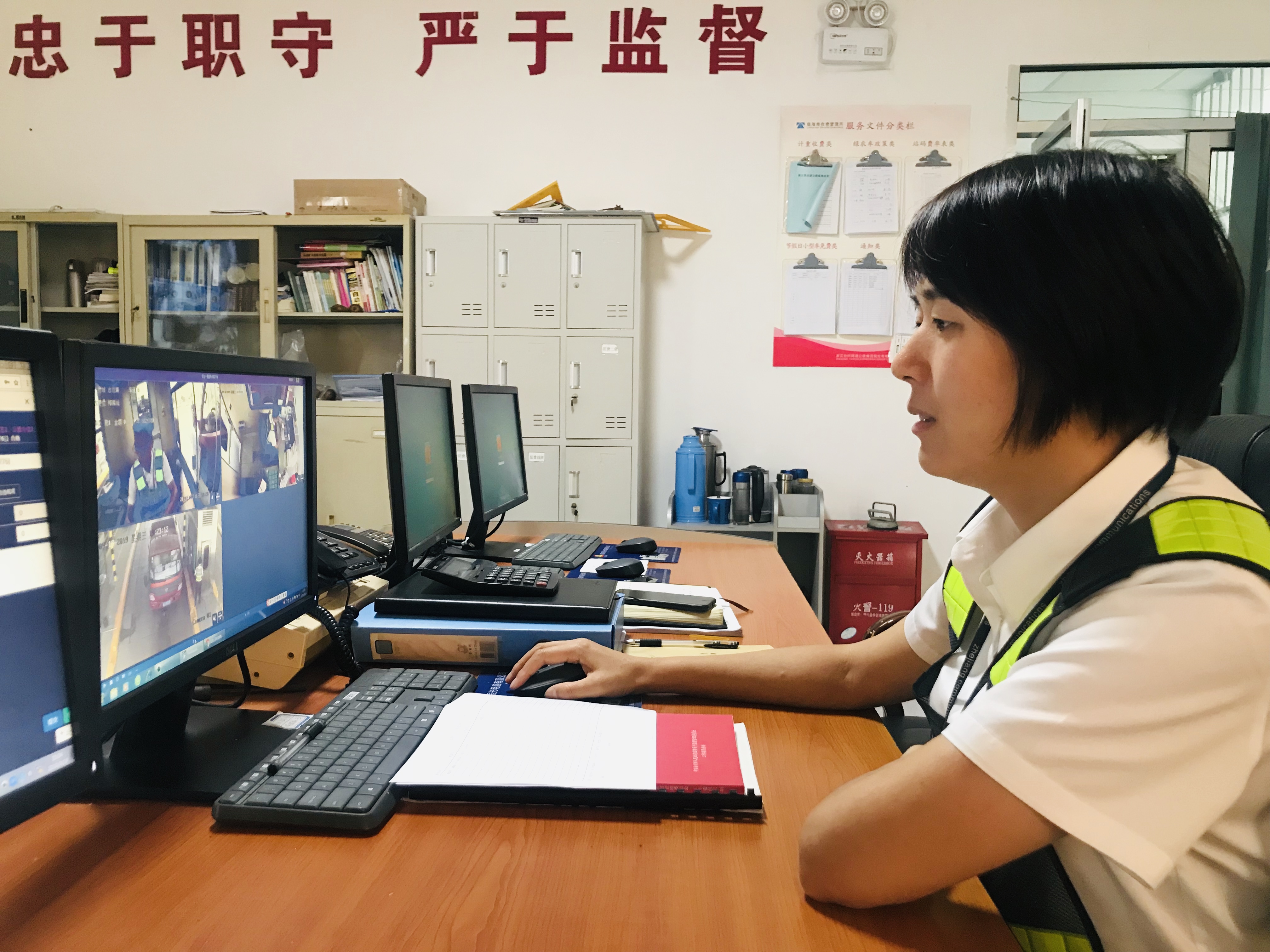 這個中秋假期,很多司機以為是免費通行,在高速入口處沒有領卡,以致出口的時候卡內無信息。溫嶺西收費所監控室里,監控稽查員沈燕娜正在為出口卡無信息的車輛忙活著。作為一名監控員,為了司乘人員快速通行,沈燕娜逐個且很有耐心地打電話問其入口站,一忙起來,她都忘記了自己是個懷孕六個月的孕婦。