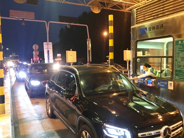 節日期間,車流量比往日多很多,每天多次出現長時間大分流,一遇上高峰期車輛源源不斷地從各個方向匯聚在此,容易造成內外廣場堵車。臨海南收費所車輛雖多,但該站所出口秩序井然,未出現擁堵現象。瞧!這位在車流中,身著反光背心在這場大車流中,揮舞著雙臂指揮著交通,讓飛馳的車輛通過客貨分離,有效降低客貨車隨意串道,達到快速放行的四班班長楊俊輝。
